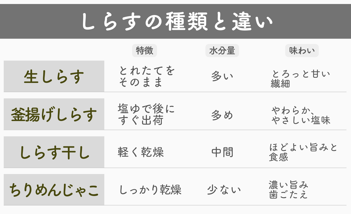 生しらす、釜揚げしらす、